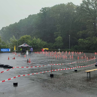 Kurz vor Start der Klasse K5 änderten sich die Bedingungen - das Wetter entschied sich zu einer kurzfristigen Dusche. Also wurden die Karts angepasst und auf Regenrrifen umgebaut.